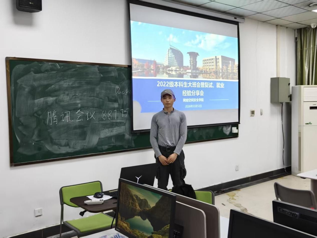 在104教室召开2026届本科毕业生就业、复试经验分享会暨2022级本科年级大班会。本次活动由辅导员王昌昌主持,邀请了多位优秀学生代表分享就业与复试经验,全体2022级本科生参加。活动旨在通过朋辈引领与精准指导,助力毕业生走好升学就业的“最后一公里”。