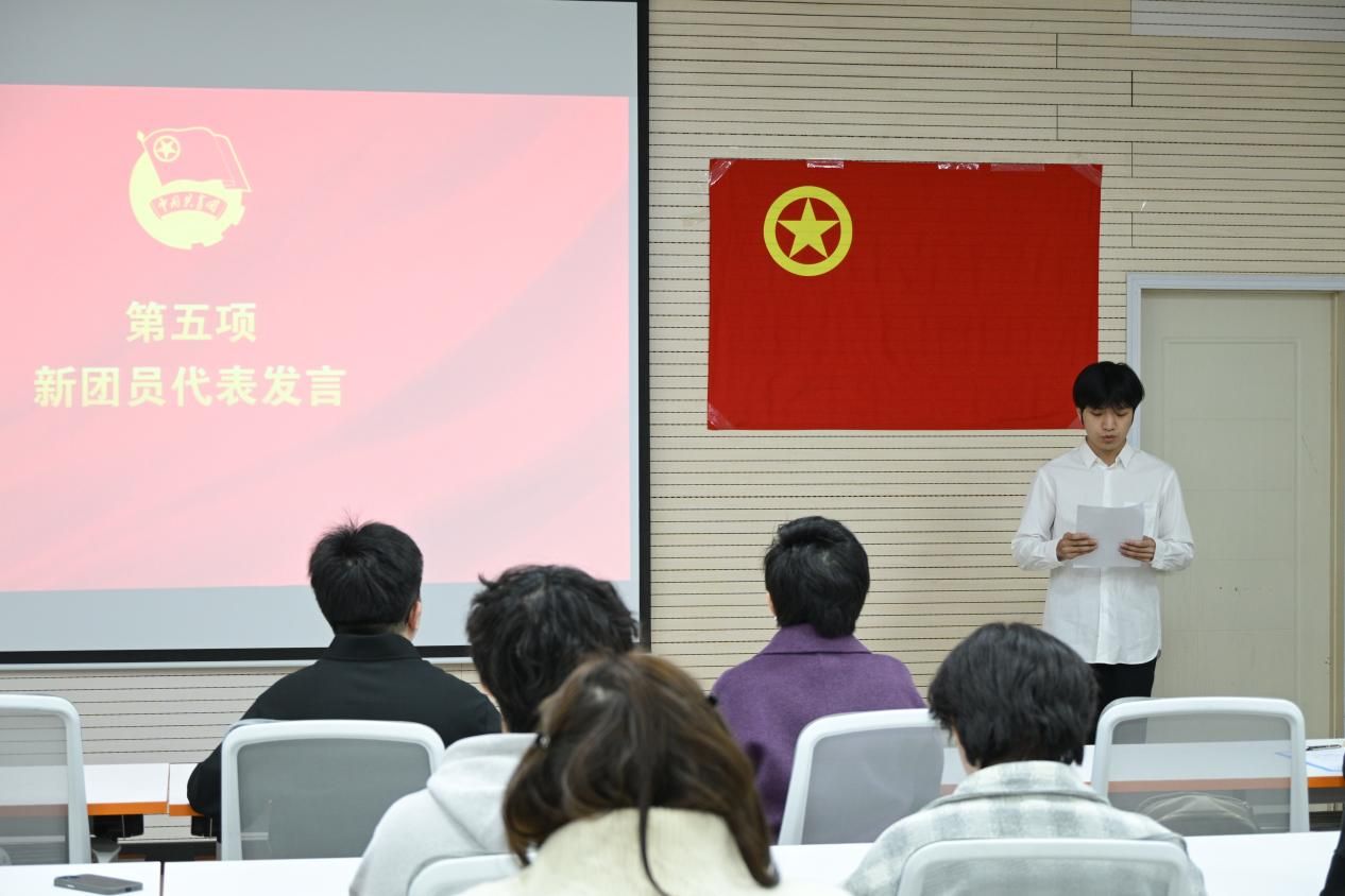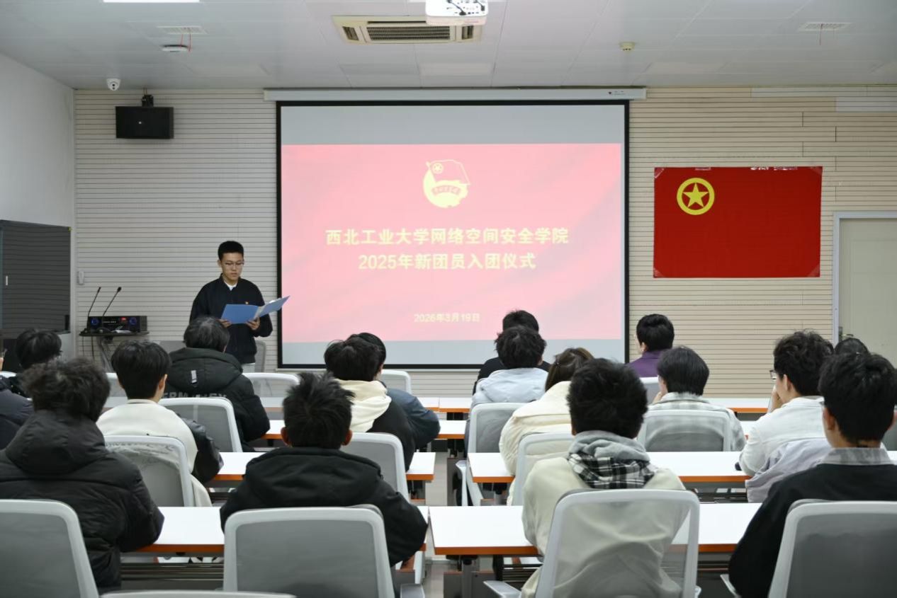吴炳良代表新团员发言。他满怀激动与自豪地分享了加入团组织的心情,郑重承诺将秉持勤学笃行的态度,紧扣西北工业大学“三实一新”校风,以全面成长成才为核心,刻苦钻研专业知识,为报效祖国、服务社会积蓄力量,践行网安青年的责任与担当。