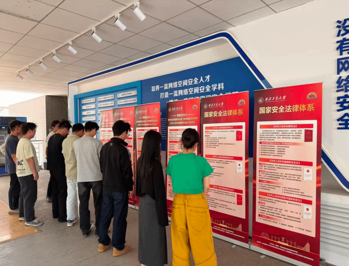 专业特色,系统展示了《中华人民共和国国家安全法》《中华人民共和国网络安全法》《中华人民共和国数据安全法》等核心法律法规的核心条款与实践要求,通过图文展板、典型案例剖析等形式,生动解读了网络攻击、数据泄露、间谍活动等违法违规行为的法律责任,让师生直观感受国家安全法治的严肃性与重要性。
