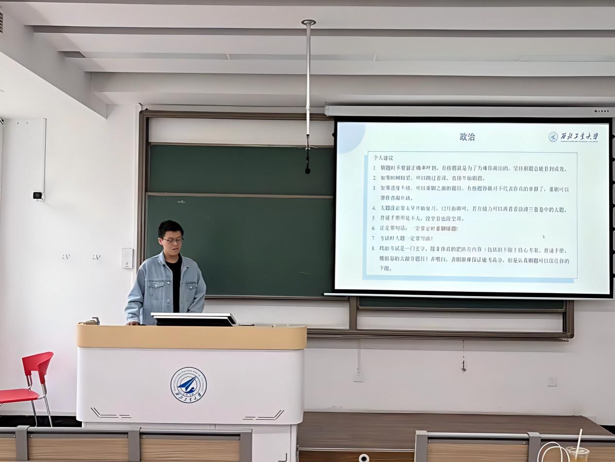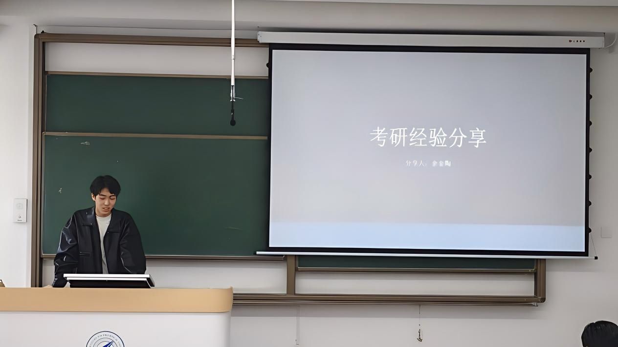 分享会上,三位学长依次发言,各有侧重。耿翊轩率先从政治学科入手,指出政治备考不必过早启动,建议从9月起集中刷题,重点利用小程序进行错题重刷,并强调大题写满的重要性。随后,他结合英语、数学和专业课的复习节奏,详细介绍了各阶段的时间分配与资料选择,特别提醒同学们不要被模拟卷的低正确率吓倒,保持平稳心态才是关键。张睿则从“单词为王”切入,分享了自己从基础薄弱到英语二取得高分的逆袭经历,强调单词背诵和真题精读的核心地位。他还就数学的基础强化、模拟卷使用、错题整理等环节给出了具体建议,并呼吁同学们避免盲目比较进度,注重长期坚持。余金陶最后发言,他重点介绍了专业课的复习路径,推荐了湖科大视频课程与“凤凰考研”题库,并结合自身经验,提醒大家在复习过程中及时截图整理知识点,便于后续快速检索和查漏补缺。